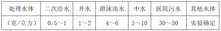 醫院污水消毒、生活污水消毒、農村飲用水消毒、養殖場飲水消毒、城市自來水消毒、印染廢水脫色處理、高層二次供水消毒